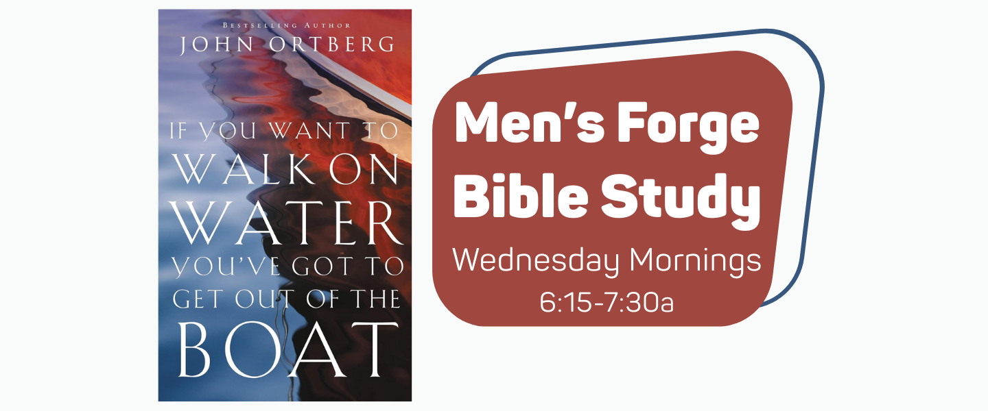 CHECK IT OUT…starting in September, Chris Vigneau will be launching a Forge Study that will meet Wednesday mornings from 6:15am to 7:30am! They will be doing a book study based on John Ortberg’s If You Want to Walk on Water, You’ve Got to Get Out of the Boat: 10 Lessons on Trusting God.