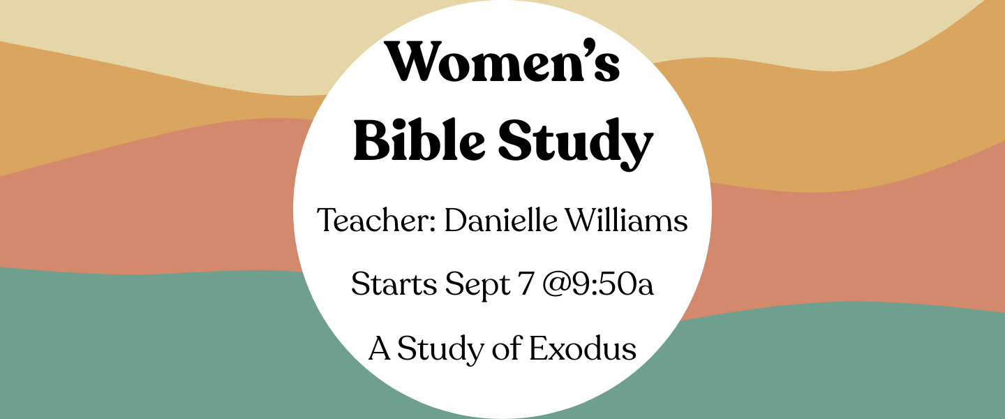 Danielle Williams is teaching a women’s bible study Sunday mornings during the adult elective hour (9:50-10:50a) between the services. We meet downstairs in Room 4 and are covering the first half of the book of Exodus. See you there!