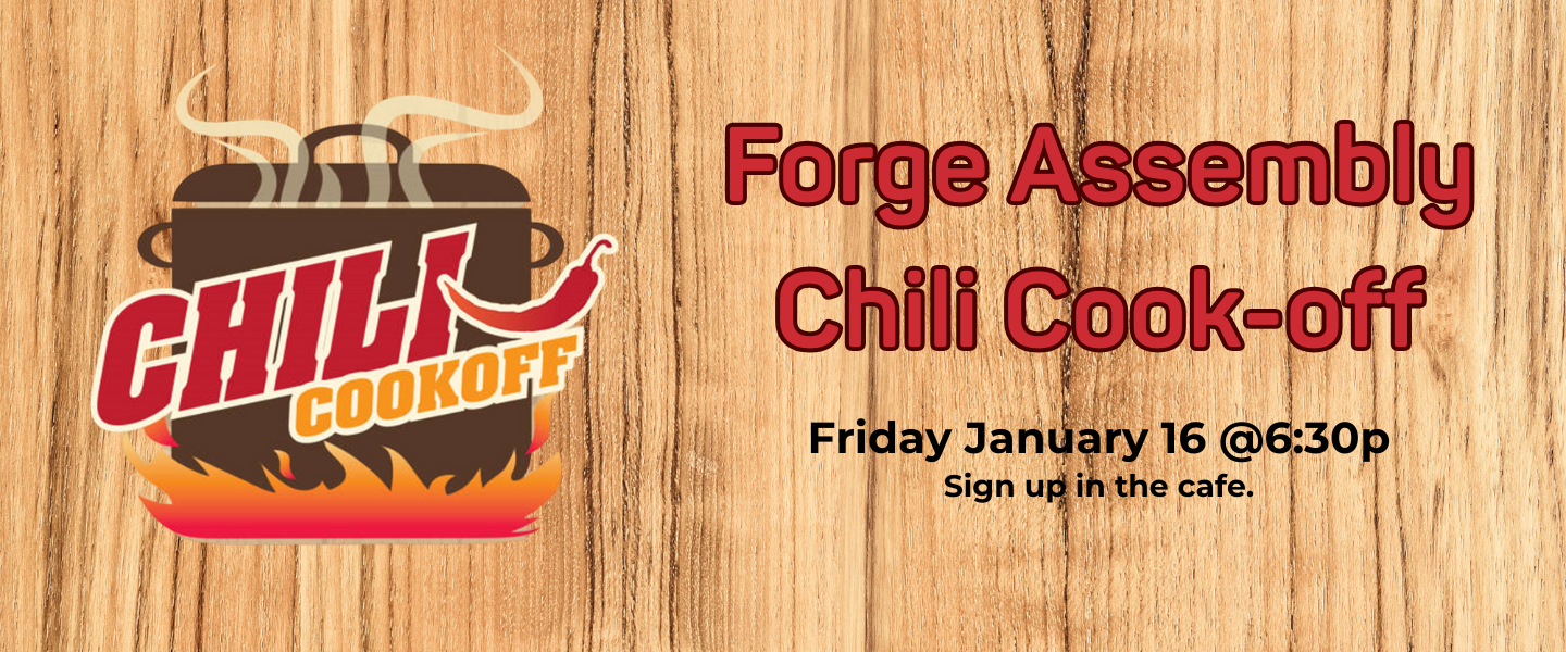 What better way to beat back the cold and dreariness of January than with some warm fellowship and spicy competition! The men of The Forge will gather together to share our favorite chili recipes with one another and rumor has it there may even be some judging involved and possibly a prize. Sign ups are available in the Harbor Cafe or at the link below. Let us know you’re bringing some chili, but even if you don’t cook more than a Hot Pocket, plan to join us for a fun Friday night!